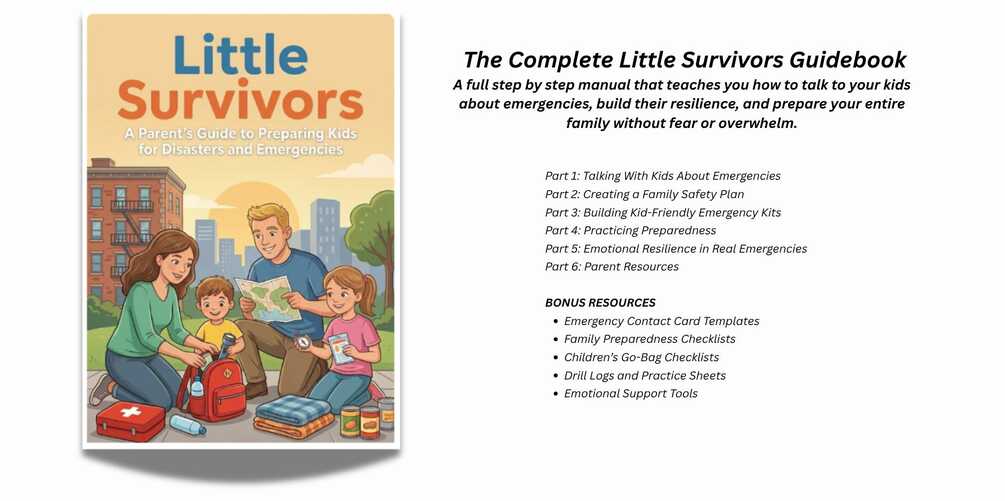 A full step by step manual that teaches you how to talk to your kids about emergencies, build their resilience, and prepare your entire family without fear or overwhelm.
